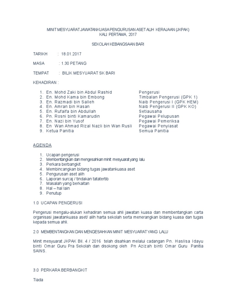 Doc Contoh Minit Mesyuarat Maiziah Hilmi Academia Edu